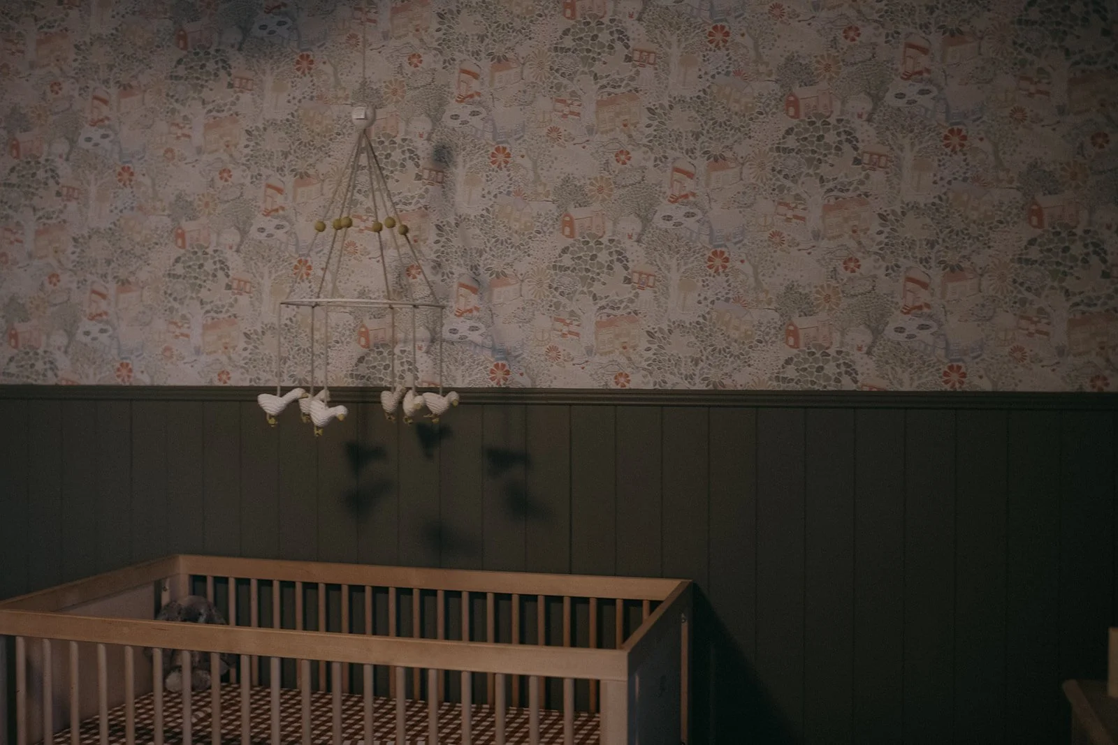 We added wainscoting in a matched matte paint. And a groovy wallpaper to boot.